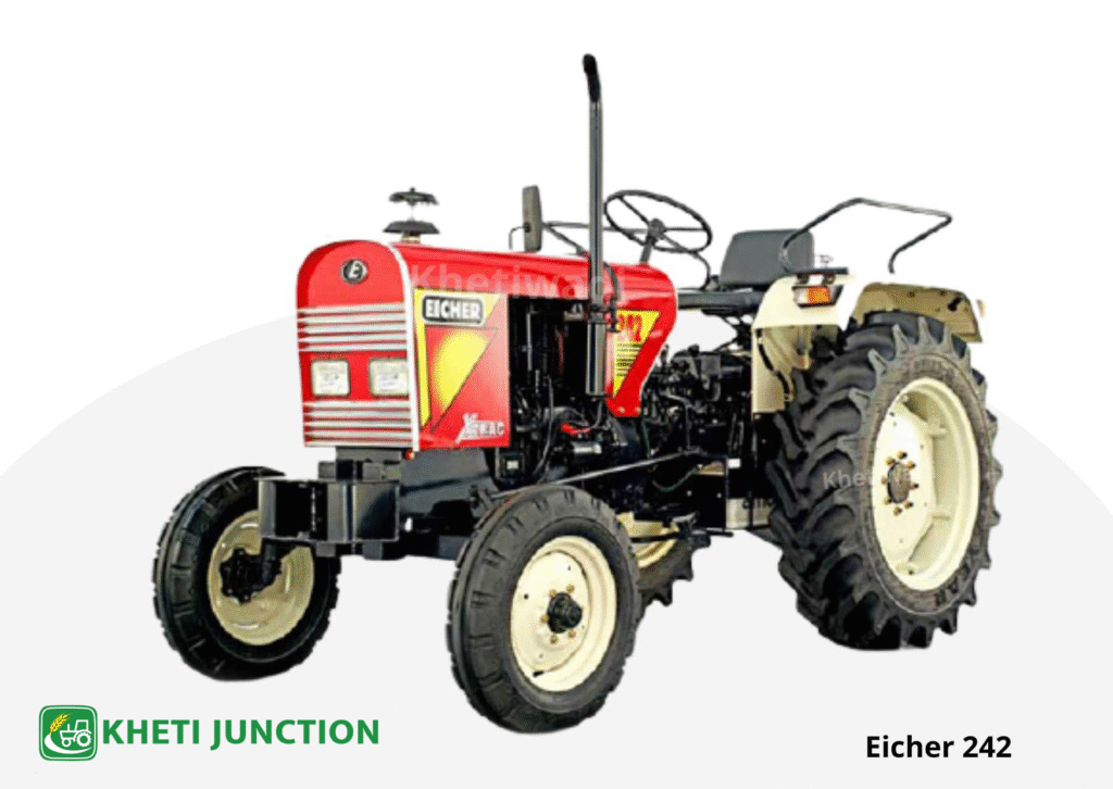 Key Highlights LIFTING CAPACITY900 kg ENGIN POWER25 HP STEERINGMechanical Steering CLUTCHSingle Friction Plate DRIVE TYPE2WD ENGIN RPM1900 RPM WEIGHTNA Eicher 242 Specifications ENGINE Horsepower (HP)25 HP Engine Capacity in cc1557 cc Engine RPM1900 RPM Cylinder1 Air Filter4 Stage filter Cooling TypeAir Cooled TRANSMISSION ClutchSingle Friction Plate Type of TransmissionSliding Mesh Forward Speed27.6 kmph Reverse speedNA No of Forward Gears8 No of Reverse Gears2 BRAKES Type of BrakeDry / Oil Immersed Turning radius with brakeNA STEERING Type of SteeringMechanical Steering Steering AdjustmentNO PTO Power Type of PTO6 Spline PTO RPM1000 PTO POWER in HP21 HP FUEL TANK FUEL TANK Capacity(Liters)35 liters DIMENSION AND WEIGHT WeightNA WheelbaseNA Overall LengthNA HYDRAULICS Lifting capacity900 kg TYRE SIZE Front Tyres6 X 16 Rear Tyress12.4 X 28 Drive Type Drive type2WD WARRANTY Warranty2000 Hours / 2 year тмЕ Back