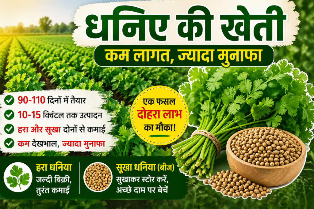 अगर आप ऐसी फसल की तलाश में हैं जो कम लागत में जल्दी मुनाफा दे, तो धनिया एक बेहतरीन विकल्प है। बढ़ती खेती लागत के दौर में यह किसानों के लिए एक स्मार्ट और फायदे का सौदा साबित हो रहा है।